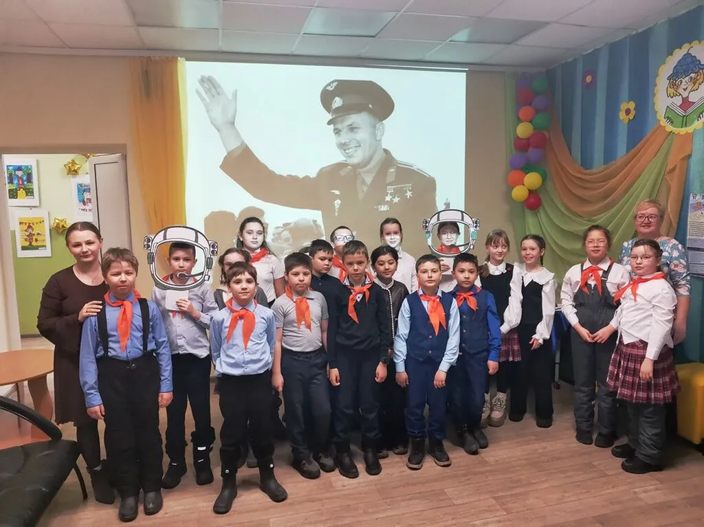 А мы с ребятами из 3 «Б» ( кл. рук. А.М. Исланкина) и 3 «В» (кл. рук. С.В. Полоскова) МКОУ СОШ №1 отправились в «Космическое» путешествие. Ребята узнали биографию первого космонавта Земли, о том, как он мечтал стать лётчиком, как вступил в отряд космонавтов и готовился к полёту на космическом корабле, как вернулся на Землю. Юрий Гагарин пробыл в космосе всего 108 минут, совершив один виток вокруг Земли, но стал известен во всём мире. Из 40000 профессий, существующих на Земле, профессия космонавта самая трудная, опасная и ответственная. Это настоящий подвиг. Подвиг научный, но прежде всего – чисто человеческий. Он объездил множество городов,30 стран и везде его принимали с огромной радостью и уважением.