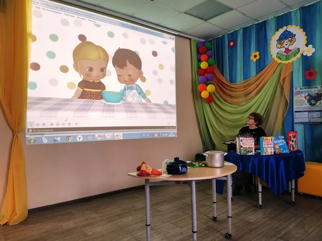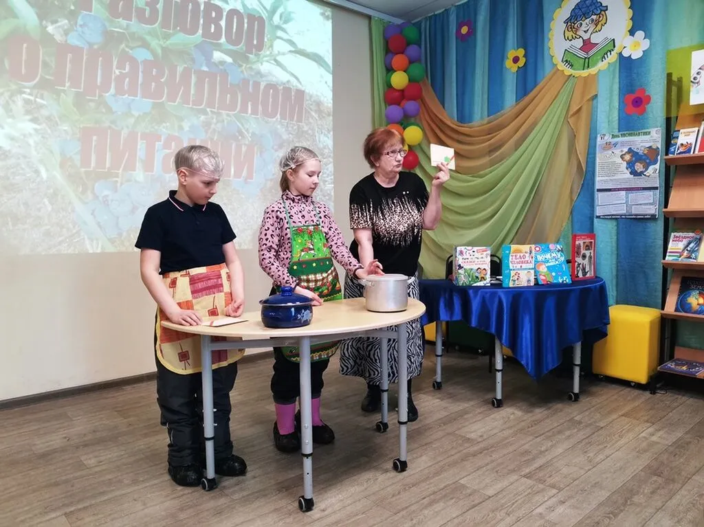В один из дней апреля в детскую библиотеку спешил 2»А» класс с классным руководителем Еленой Николаевной Левиной на занятие: «Что вредно, а что полезно». Что необходимо человеку, чтобы жить счастливо: бегать, прыгать, играть, заниматься любимым делом ? Конечно же – здоровье. В русской народной пословице говорится: «Человек ест то, что он ест». Именно о питании и шла речь на занятии. Что такое аппетит, какие продукты полезные, какие вредные. Дети отвечали на вопросы викторины: « Молочные реки, кисельные берега», отгадывали загадки о фруктах и овощах. Даже варили кашу. Смотрели познавательные мультфильмы с «Иммунтиком». Время пролетело быстро. В заключении ребята оценили, что разговор был важным и полезным .
